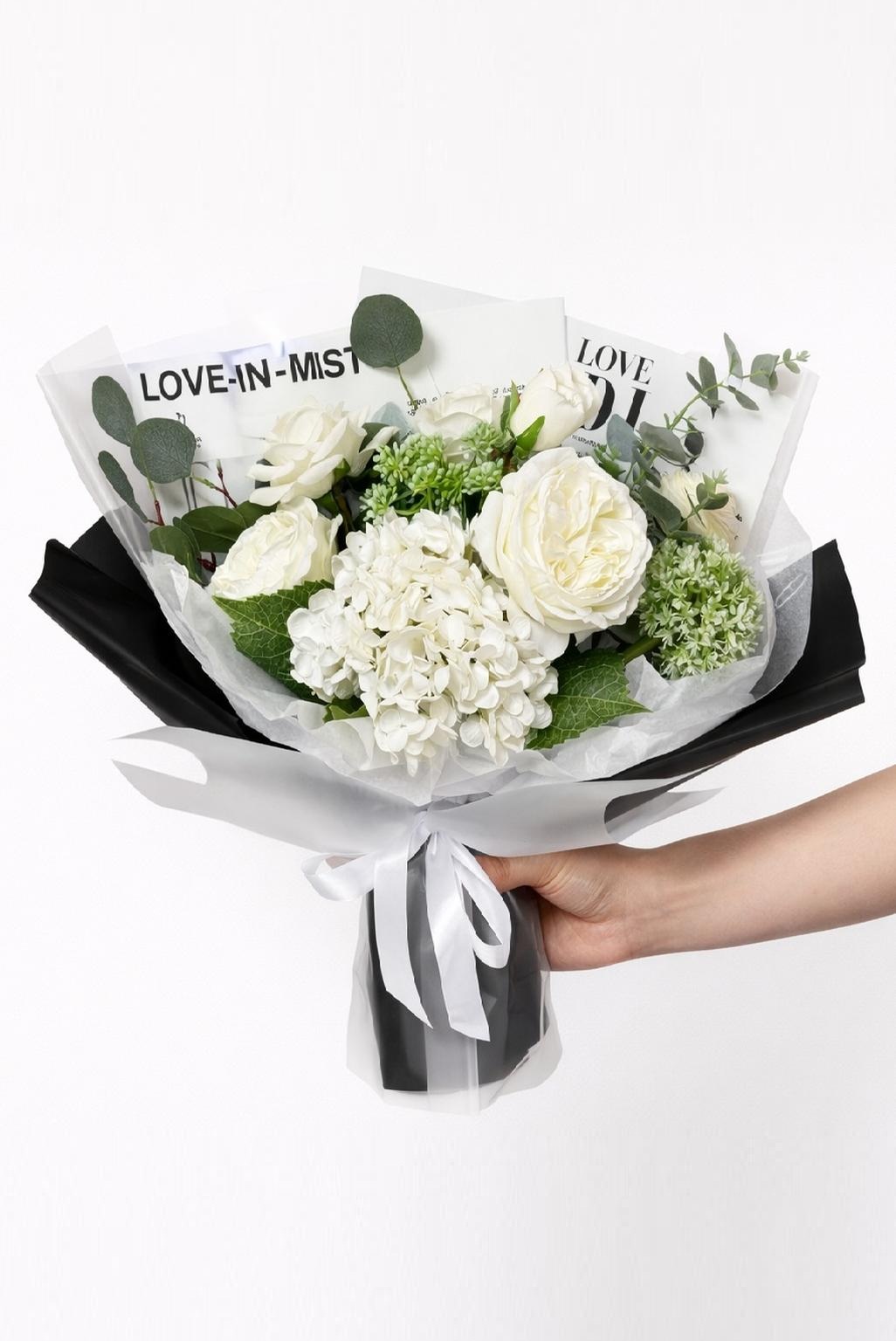 Быстро сборная упаковка в пленке. Форма №4 Коллекция "Гламур". Цвет: ЧЕРНЫЙ. Размер букета: +/- в55, ш50