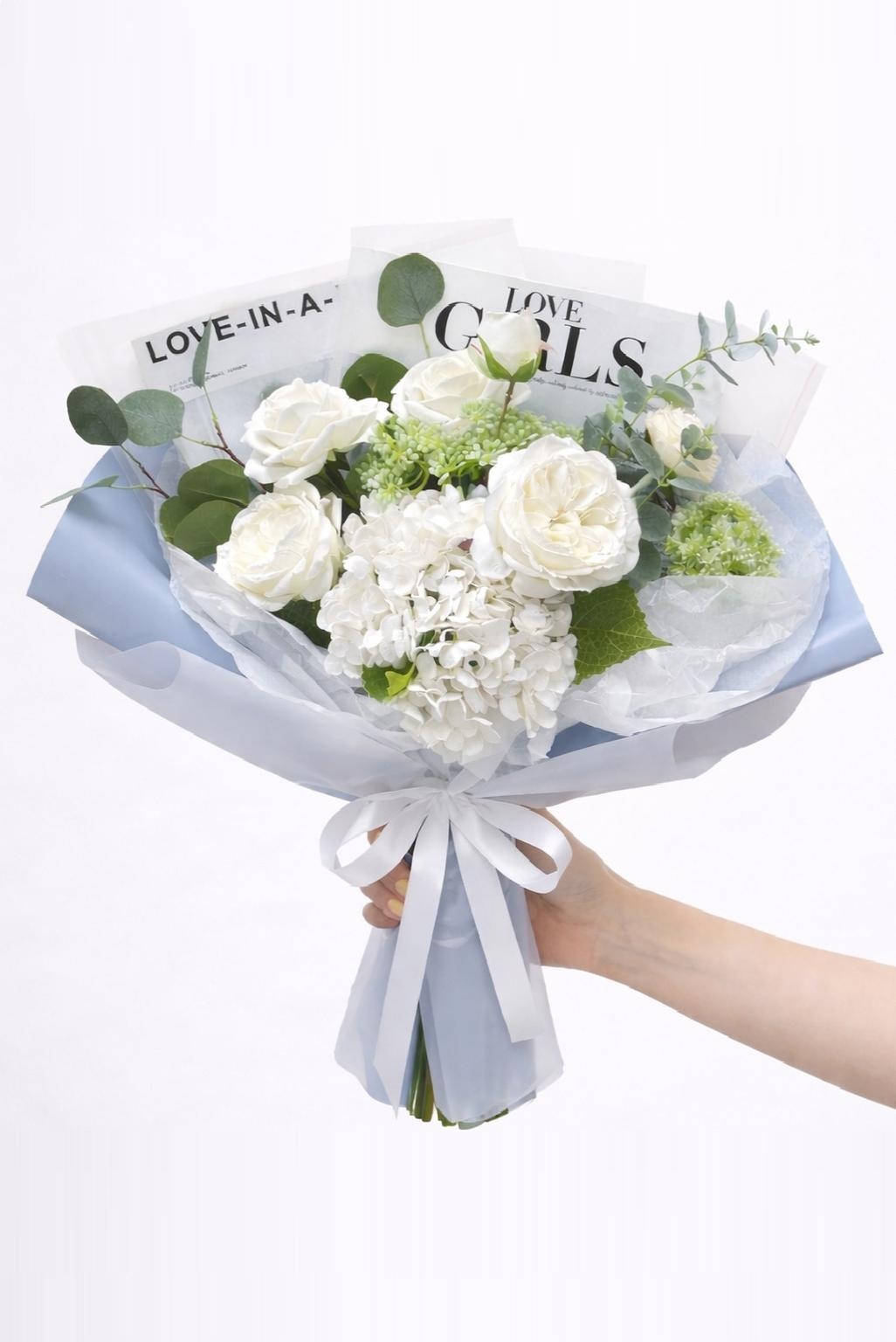 Быстро сборная упаковка в пленке. Форма №4 Коллекция "Гламур". Цвет: ГОЛУБОЙ. Размер букета: +/- в55, ш50