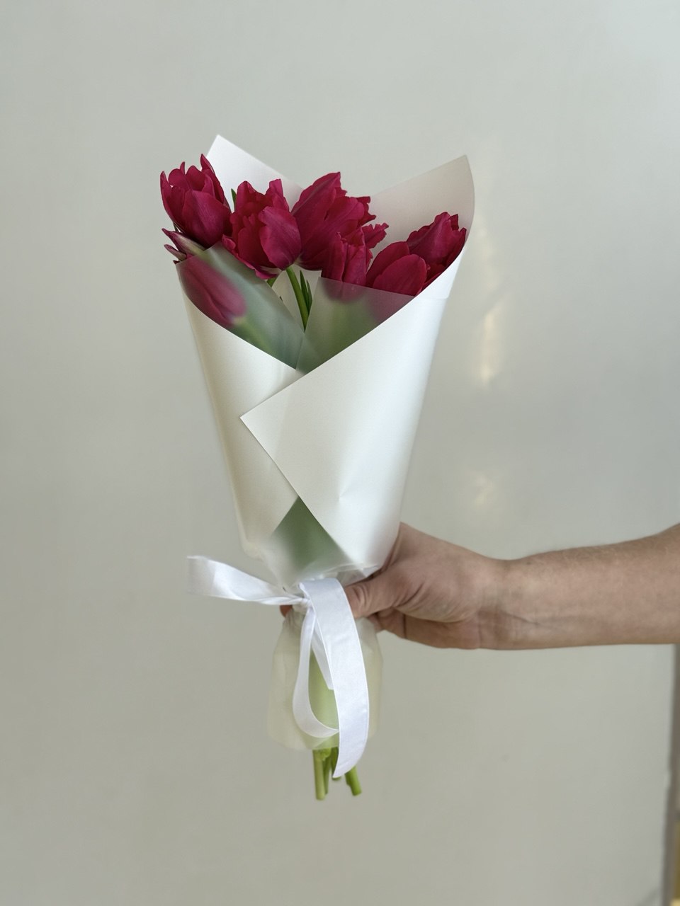 Быстросборная упаковка форма № 0 под 3/5/7/9 тюльпанов.Цвет: прозрачная матовая с белой пленкой.