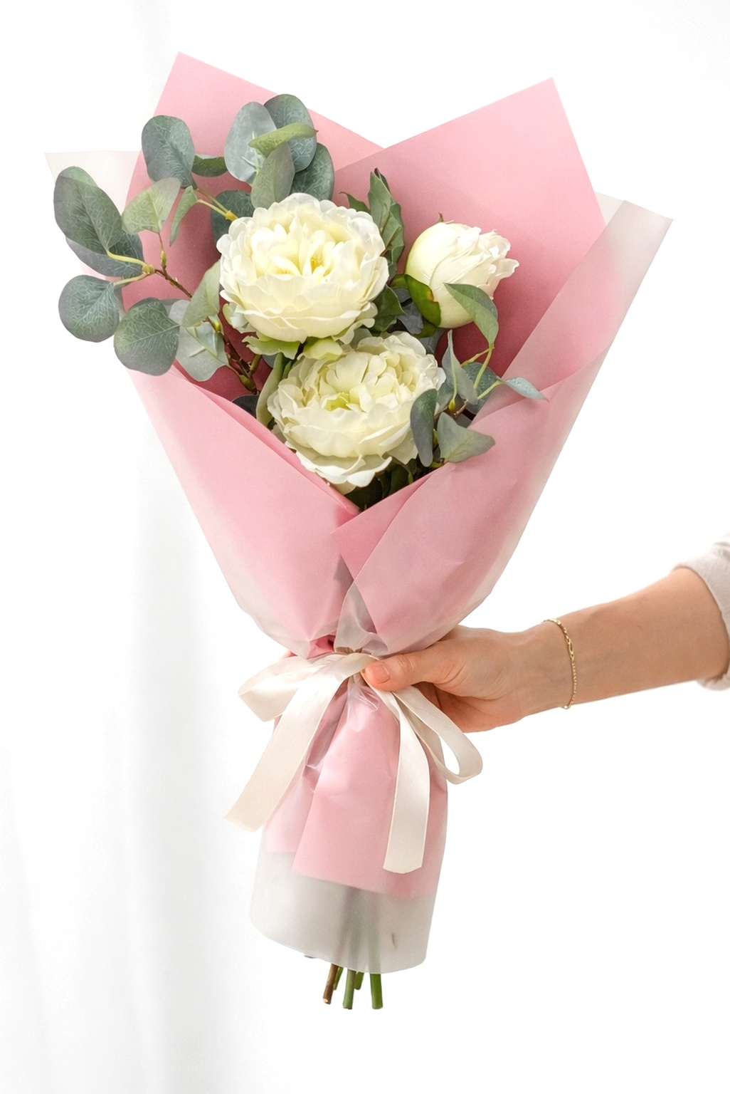 Быстросборная упаковка в пленке. Форма № 0.1 Под 3-9 ВЫСОКИХ тюльпанов или 3-5 роз. Цвет: прозрачная с РОЗОВОЙ пленкой.