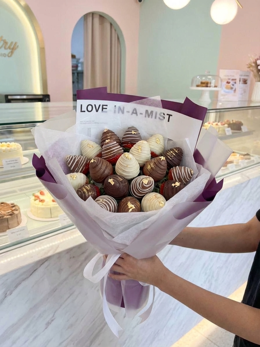 ФУД БУКЕТ Цвет: прозрачная матовая пленка + черничная плёнка + тишью