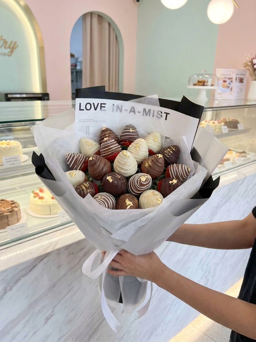 ФУД БУКЕТ Цвет: прозрачная матовая пленка + чёрная плёнка + тишью