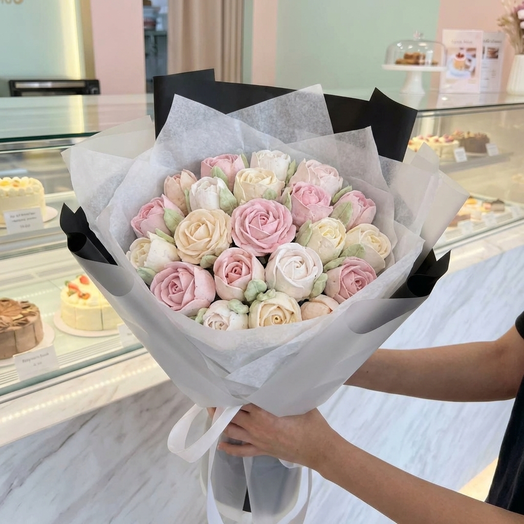 ФУД БУКЕТ Цвет: прозрачная матовая пленка + чёрная плёнка + тишью