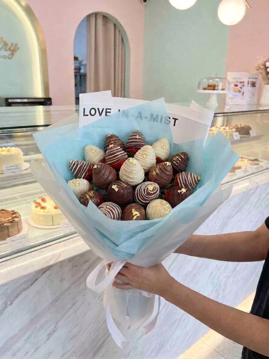 ФУД БУКЕТ Цвет: прозрачная матовая пленка с голубой тишью.