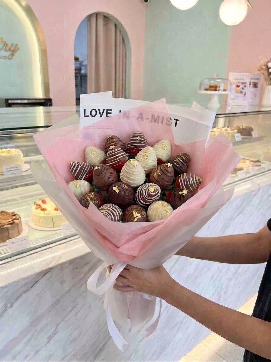 ФУД БУКЕТ Цвет: прозрачная матовая пленка с розовой тишью.