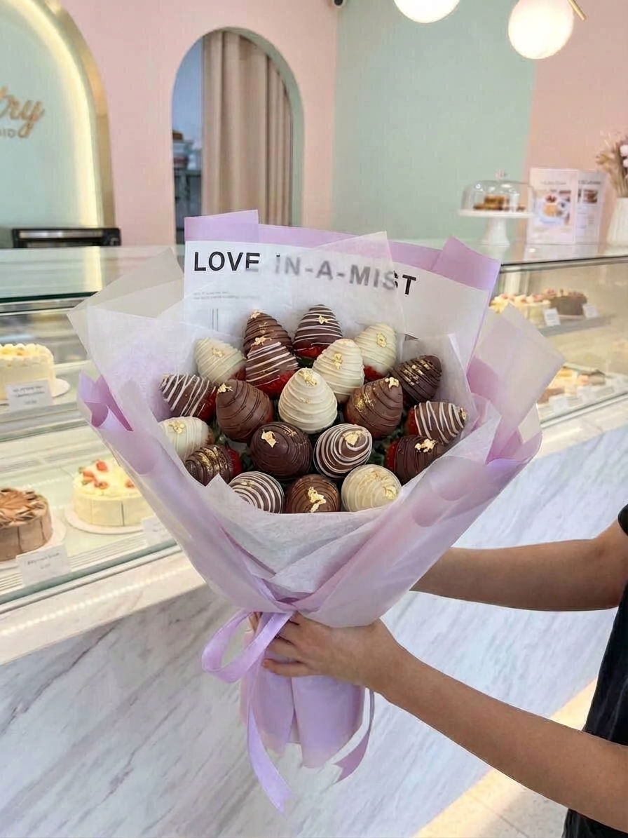 ФУД БУКЕТ Цвет: прозрачная матовая пленка + сиреневая пленка + тишью