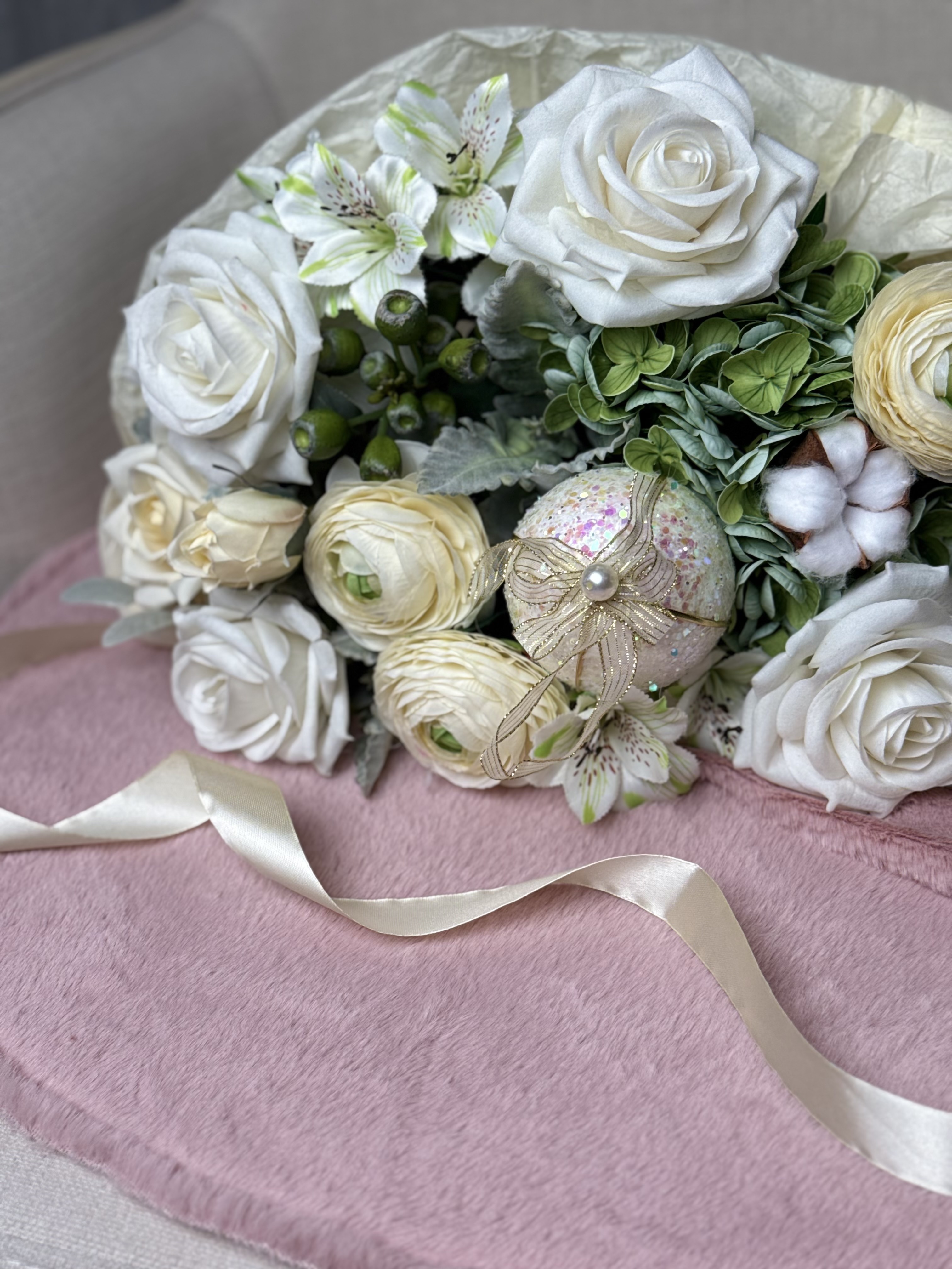 Платье для цветов. Круглая форма. Мех искусственный. Цвет:Пыльно-розовый.