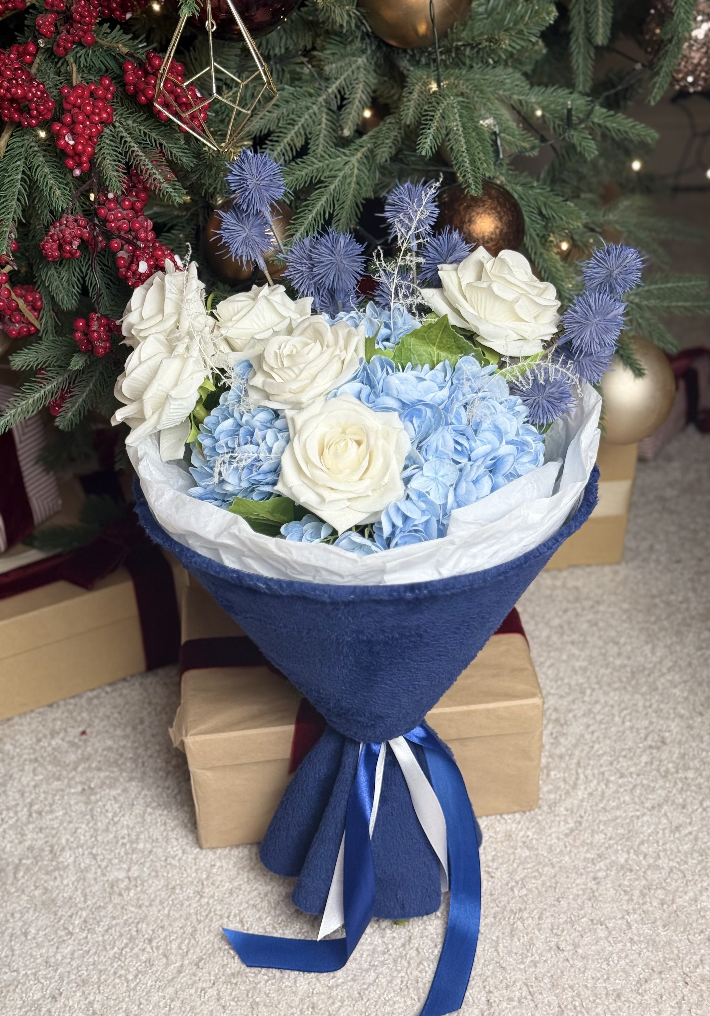 Платье для цветов. Круглая форма. Мех искусственный. Цвет:Синий.